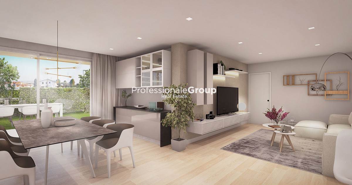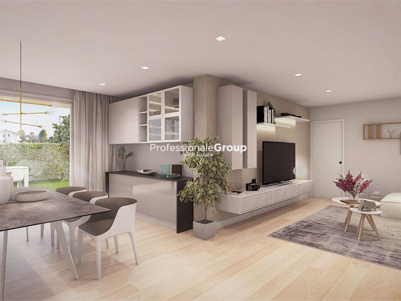 RIF. VS-A03 - L'agenzia Immobiliare PROFESSIONALE GROUP Real Estate, ha il piacere di proporvi in vendita questo ampio appartamento 3 camere al piano terra con giardino, inserito in moderno fabbricato di nuova costruzione in Classe Energetica A3/4, ubicato a 10 minuti dal centro storico di Treviso. L'appartamento beneficia di un'ottima esposizione e quindi oltre ad essere molto luminoso, gode anche di un'ottima privacy. L'unità immobiliare si compone di: ingresso nell'ampio soggiorno con cottura a vista (separabile) di 36,78 mq, ripostiglio di 5,46 mq , disimpegno di corridoio, camera da letto matrimoniale, 2 camere da letto singole ed infine, 2 bagni entrambi finestrati. Completano la proprietà dell'immobile, il garage pertinenziale e magazzino. Finiture di ottimo livello, con dotazione di impianto multiservizi in fibra ottica alta velocità, domotica per il controllo tradizionale o da remoto con tecnologia B-smart Living Now bticino. Sicuramente un'opportunità come acquisto 1^casa in contesto servito a soli 10 minuti dalla città!!! Lieti di fornirvi ulteriori informazioni in sede.