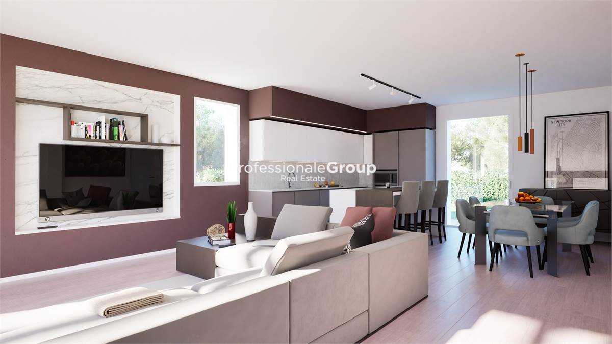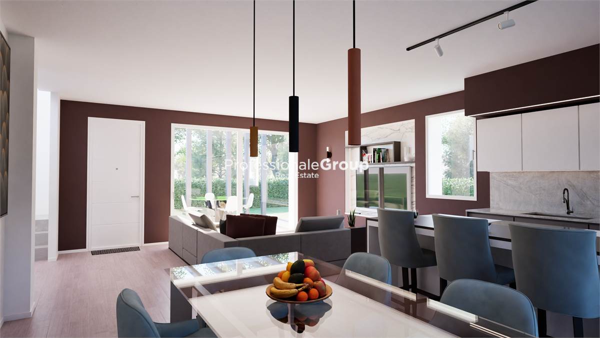 RIF. ACV-S241 - L'Agenzia Immobiliare PROFESSIONALE GROUP Real Estate, ha il piacere di proporvi in vendita queste moderne ed eleganti ville trifamiliari di nuova costruzione, inserite in un piacevole contesto residenziale centrale e vicine a tutti i servizi, ubicate a Carità di Villorba. Gli immobili beneficiano di un’ampia metratura complessiva e di un’ottima distribuzione degli ambienti suddivisi su 2 livelli fuori terra, sicuramente funzionali ad ogni tipo di esigenza abitativa. L’ingresso vi accompagna all'interno di un’ampia zona living di circa 50mq, accesso al portico esterno con un’elegante pompeiana, il disimpegno, un bagno e la lavanderia. Salendo il corpo scala, la zona notte al piano primo si compone di ampio disimpegno di corridoio, una camera da letto matrimoniale con bagno padronale, una seconda camera matrimoniale con accesso al terrazzo, una terza camera singola, un ulteriore bagno con doccia ed un ripostiglio. A completare la proprietà, un ampio giardino esclusivo che contorna l’abitazione sui 3 lati, il garage doppio comunicante direttamente con l’abitazione ed un posto auto esterno. Le unità immobiliari sono già provviste di porta di blindata, aria condizionata, video citofono, predisposizione per impianto di allarme, impianto fotovoltaico, riscaldamento a pavimento, infissi con triplo vetro e finiture di pregio. Consegna prevista per fine 2025! CLASSE ENERGETICA A4. Lieti di fornirvi ulteriori informazioni in sede.