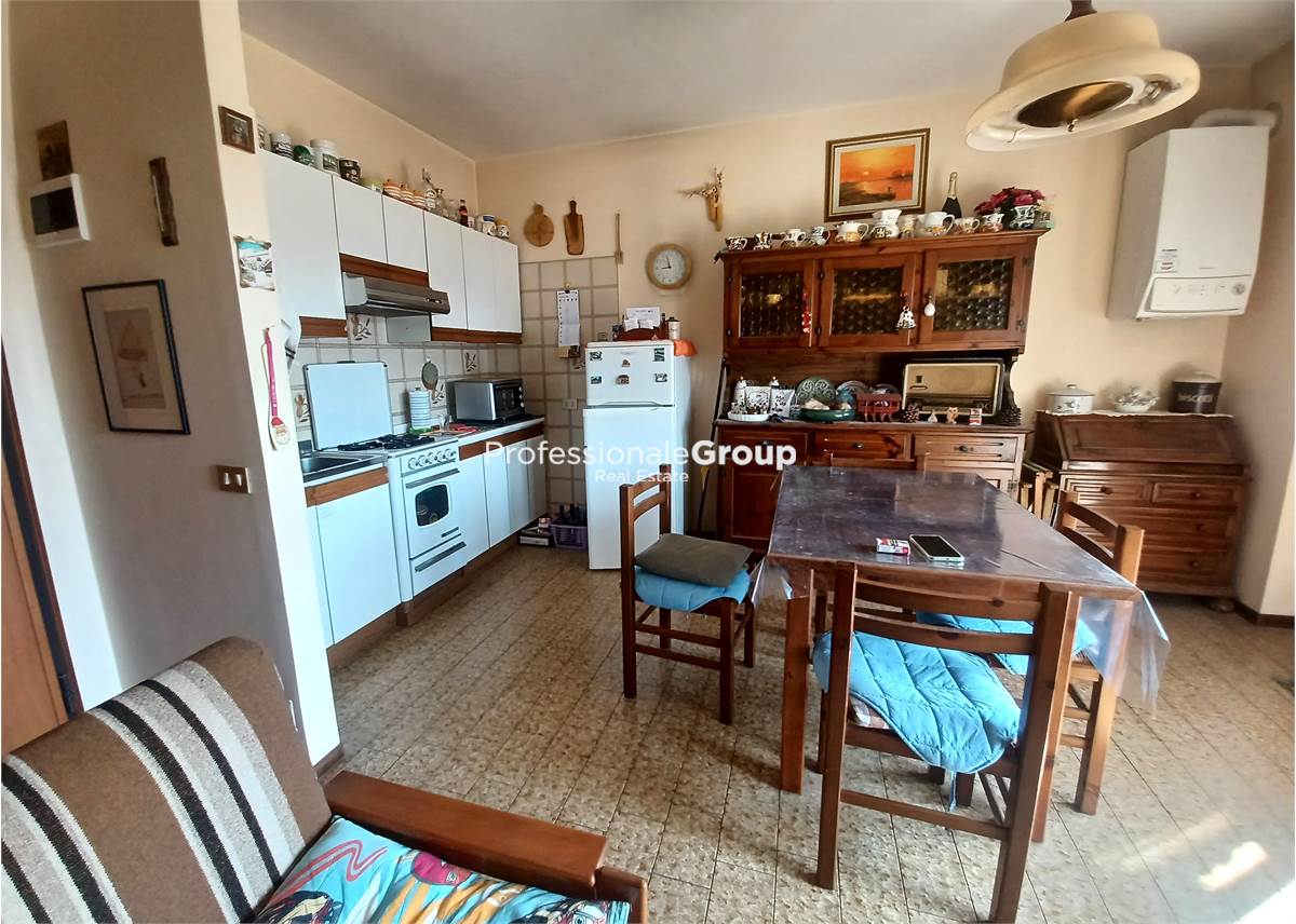 Entrando dalla porta d'ingresso ci troviamo in un comodo soggiorno con angolo cottura che affaccia su una spaziosa terrazza sempre al sole.